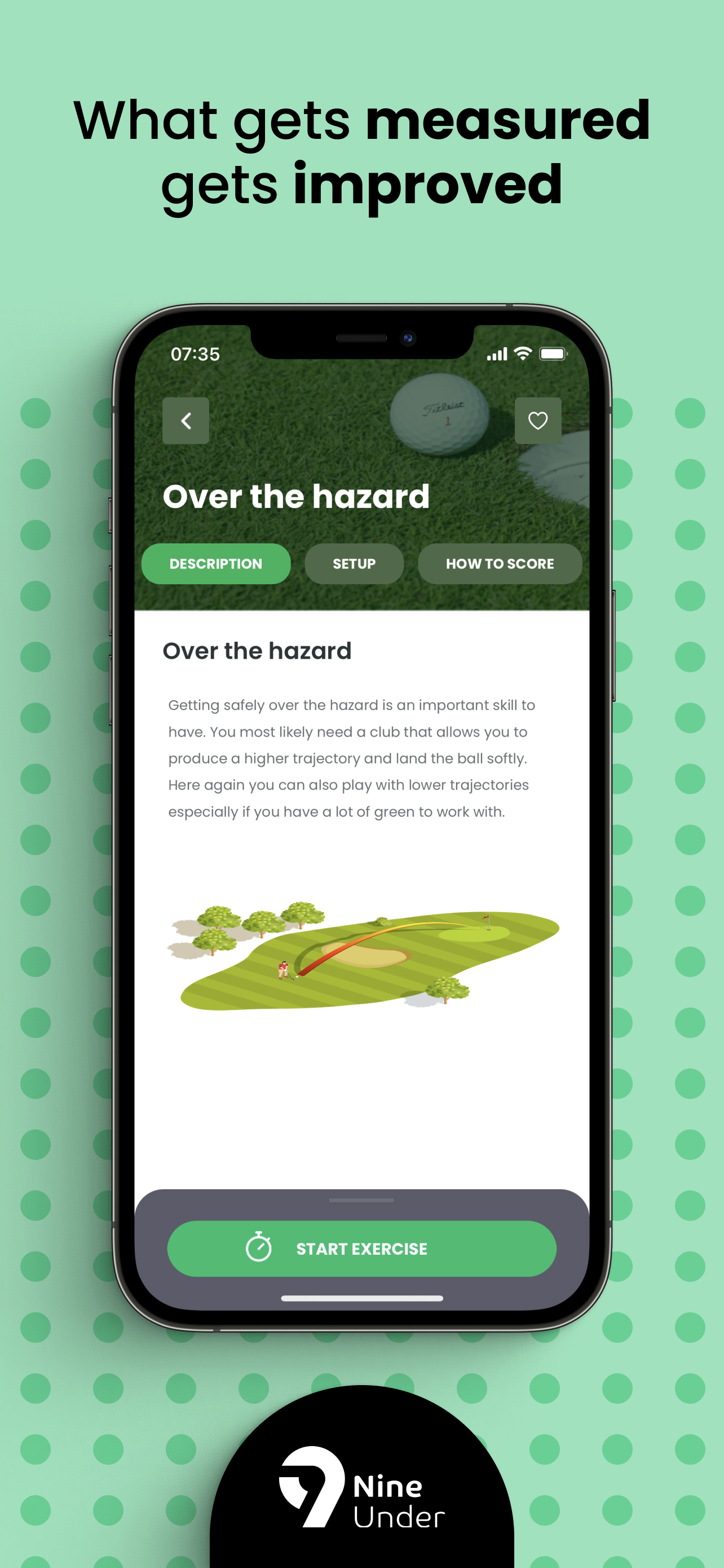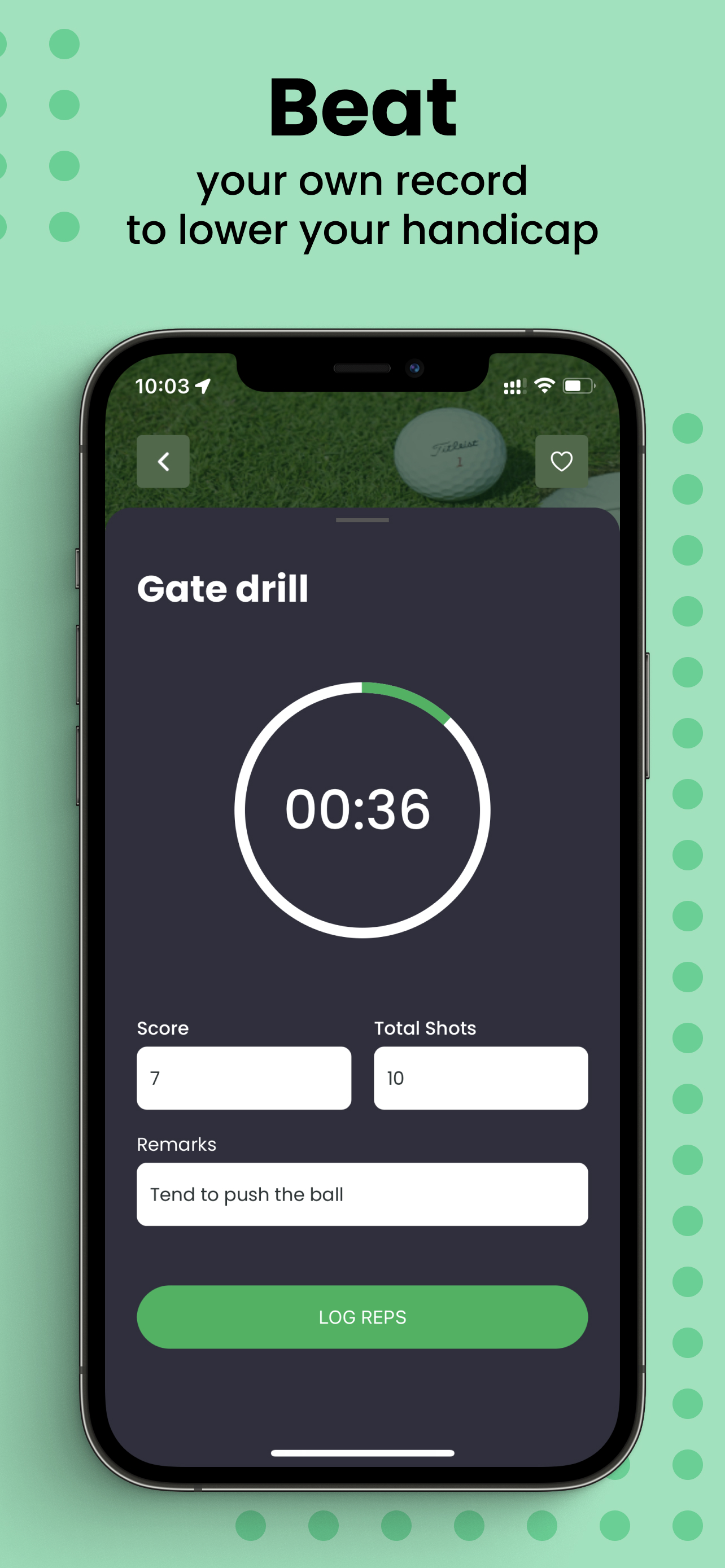• What gets measured and recorded will improve. The app helps you to bring some structure to your training. Whether you are a very ambitious golf player who goes to the range and trains for hours or if you are a casual golfer having a 15 minute pre-round routine. The app will give you a variety of exercises to follow and allows you to record your success. It allows you to see your progress and hopefully gives you some motivation to beat your own records.