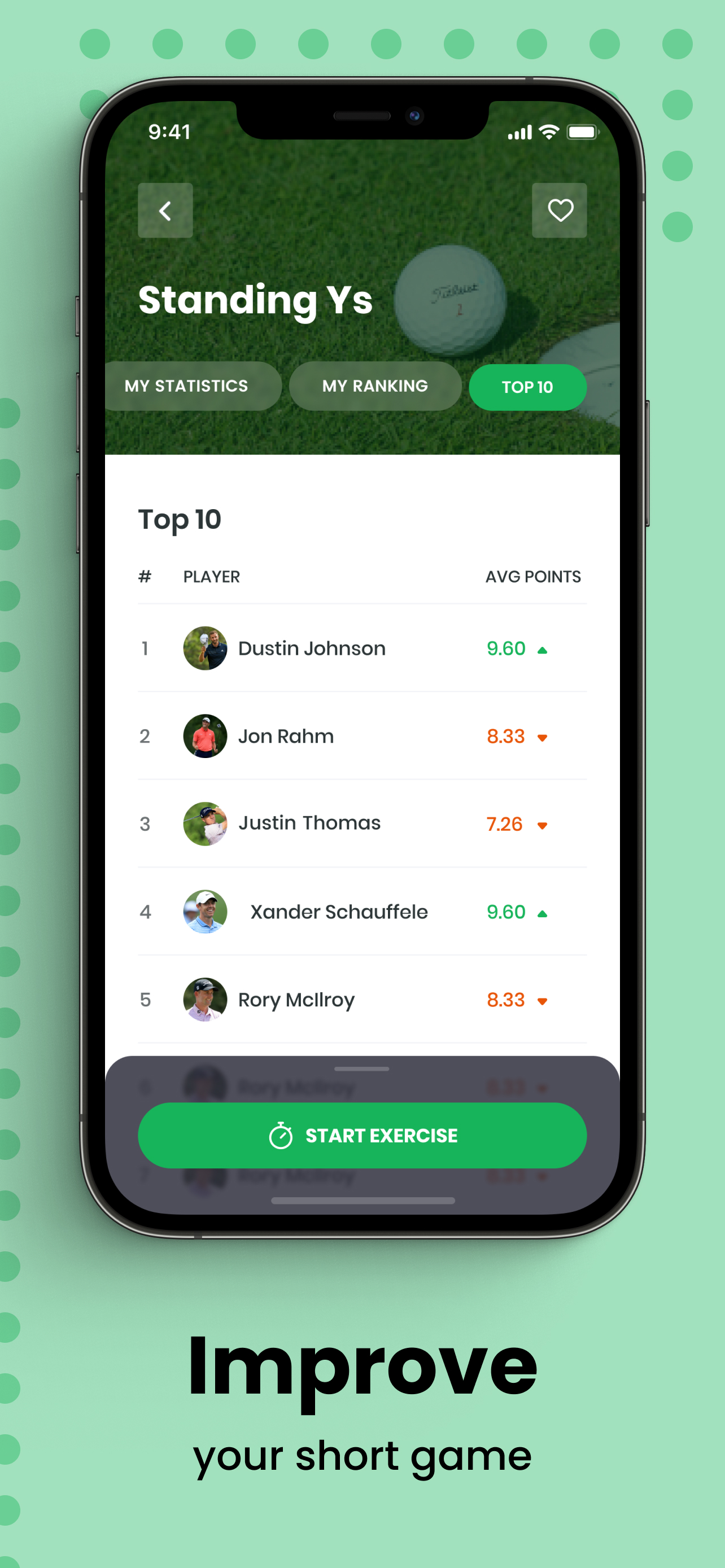 Our golf app provides multiple features to ease your daily use and helps to track your progress. It surely contains exercises which you may have never tried before and helps to turn your weaknesses into your strengths.